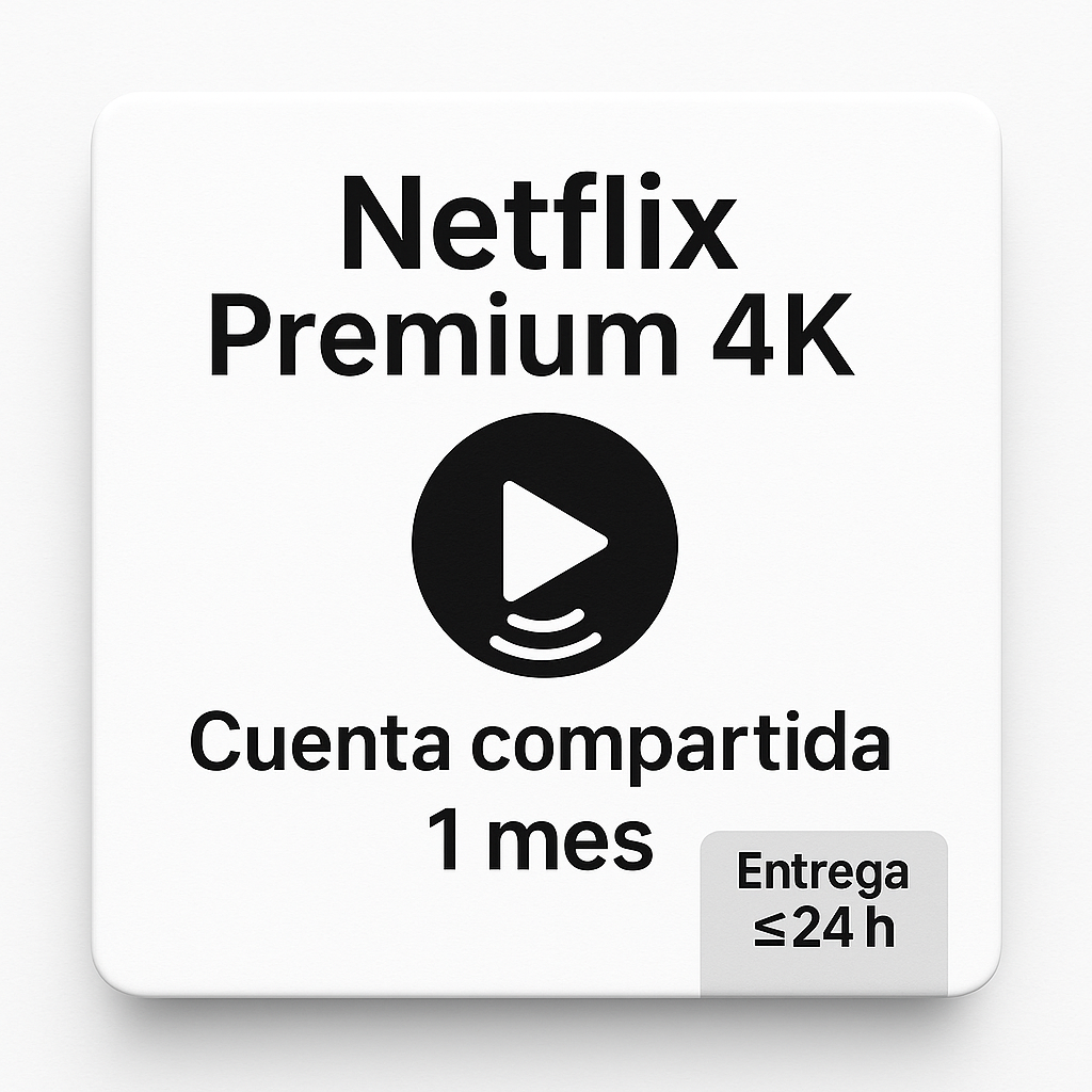 Disfruta **Netflix Premium 4K** durante **1 mes** en **cuenta compartida**. Ideal para ver contenido en calidad Ultra HD (según disponibilidad del plan y tu conexión).